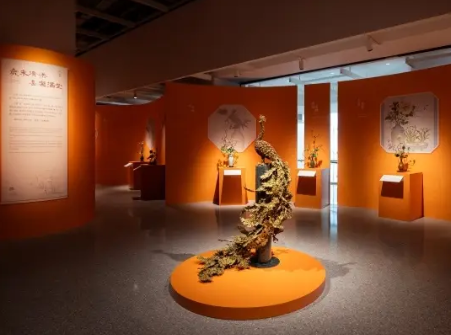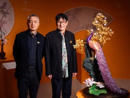 清供系列:朱炳仁、朱軍岷父子藝術作品合展。朱軍岷的盆景取各大博物館珍藏清供精髓,融東方美學,讓銅上開花。用傳統清供雅韻,環繞著朱炳仁大師的大型孔雀雕塑。
