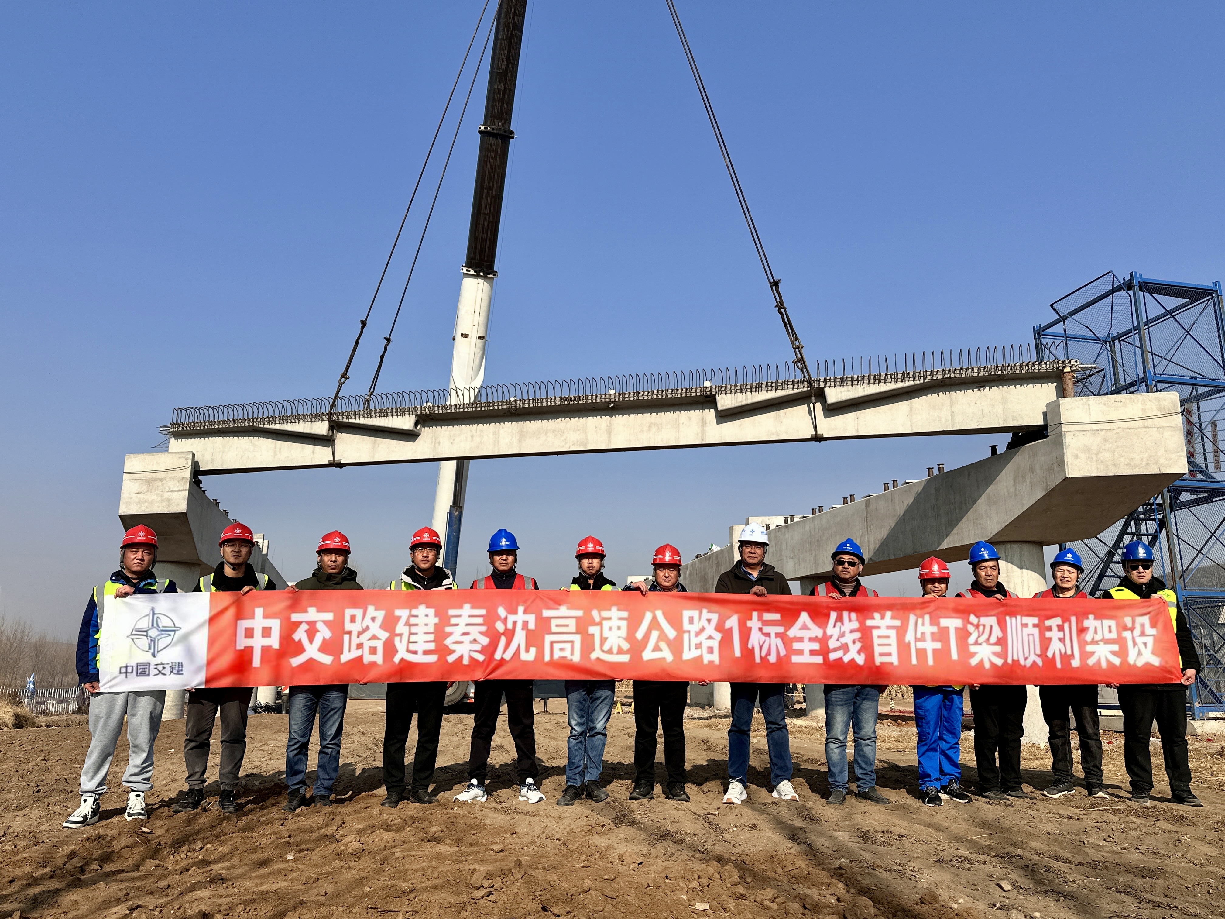 标题:中交路建秦沈1標首件預製T梁成功架設!全線橋樑建設邁入新階段